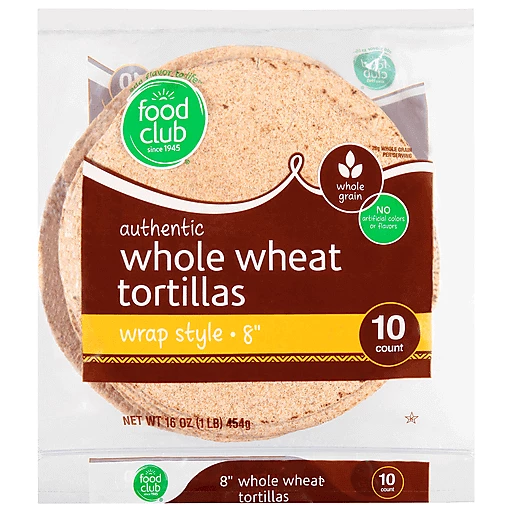 Whole wheat wrap-style tortillas from Food Club, a healthy choice for wraps.