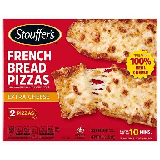 STOUFFER’S FRENCH BREAD PIZZAS EXTRA CHEESE is a high-quality pizza crafted with fresh ingredients and baked to perfection. With its crispy base, rich sauce, and generous toppings, it’s a satisfying choice for any pizza lover.